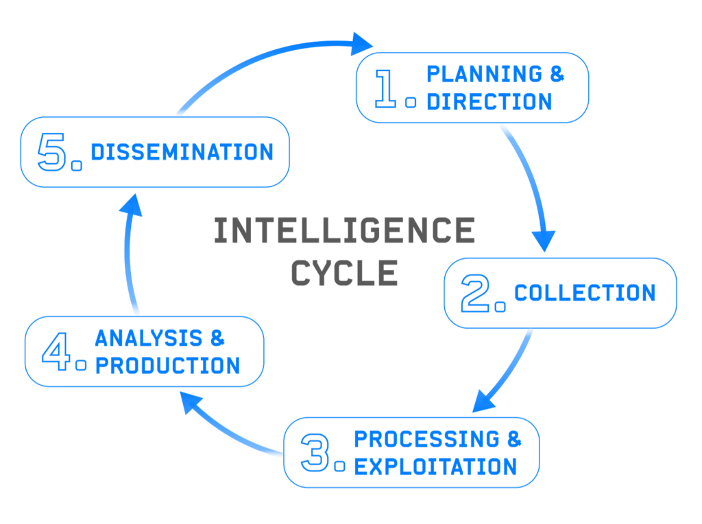 The intelligence cycle is a 5 step process that serves as a framework for understanding intelligence requirements, collecting information, transformation information into knowledge, turning that knowledge into insights through analysis, and disseminating those insights to stakeholders while receiving feedback. This issue covers how you can use LLMs every step of the way to enhance your workflow.